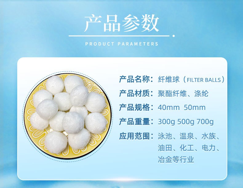 纖維球填料具有彈性效果好、濾速快、空隙大、截污容量大、工作周期長、過濾效果好、水頭損失小等優(yōu)點。適應于各種水質的過濾和精濾。