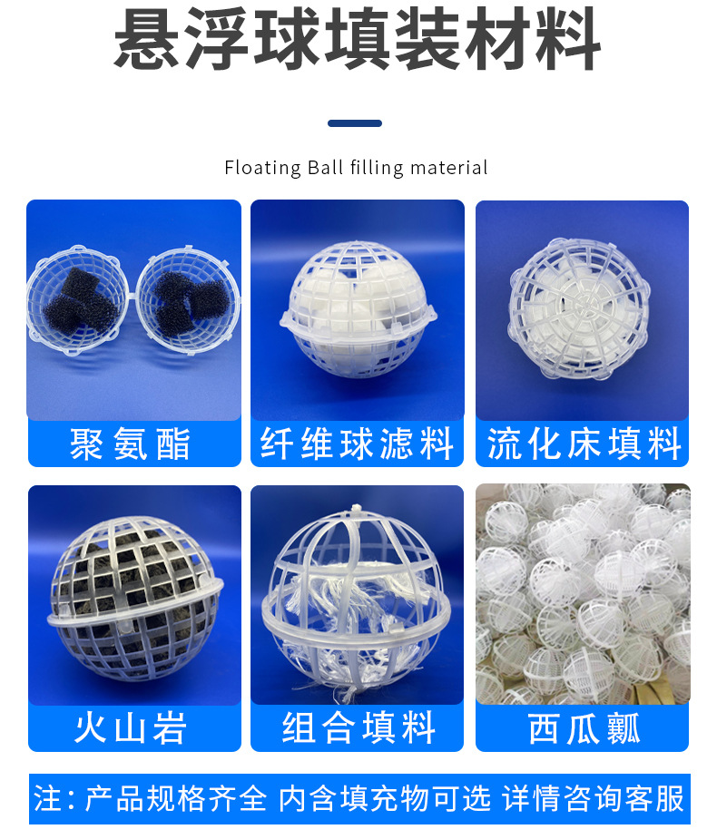多孔球形生物懸浮球填料為什么也屬于一種組合填料,因為懸浮球填料具有全立體結(jié)構(gòu),里面可以填充聚氨酯海綿 火山巖  陶粒 沸石 脫氮填料 纖維濾料等生物水處理濾料【填料】。
