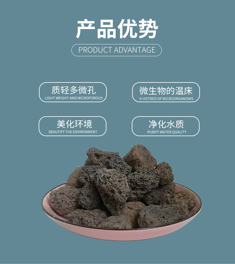 2、多孔性:火山巖是天然蜂窩多孔,是菌膠團(tuán)是佳的生長(zhǎng)環(huán)境。